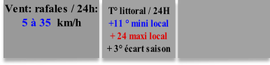 Matin ensoleillé peu nuageux, des nuages plus nombreux en début de matin et cours d’après-midi, soirée, le vent souffle généralement entre 5 - 25 km/h, mais par endroits, des rafales autour de 40 km/h peuvent traverser le département, les températures évoluent généralement de 14° à 16° pour les minis à + 23° jusqu’à +25° local, la pression atmosphérique entre 14h & 20h autour de 1018 hpa, la nébulosité peut dérivée